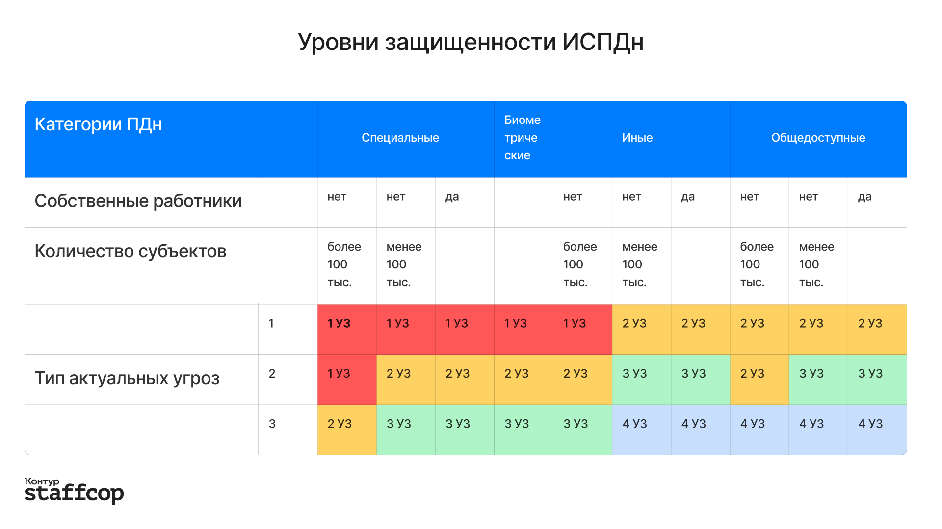 Уровни защищенности (УЗ) складываются из всех факторов, описанных выше. Всего их четыре: