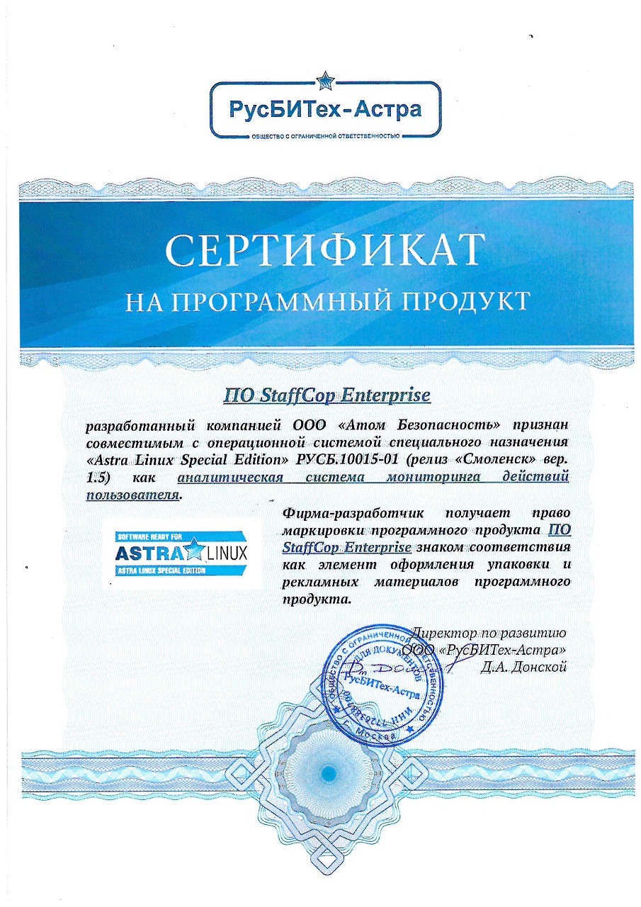 Сертификат совместимости с ОС Astra Linux